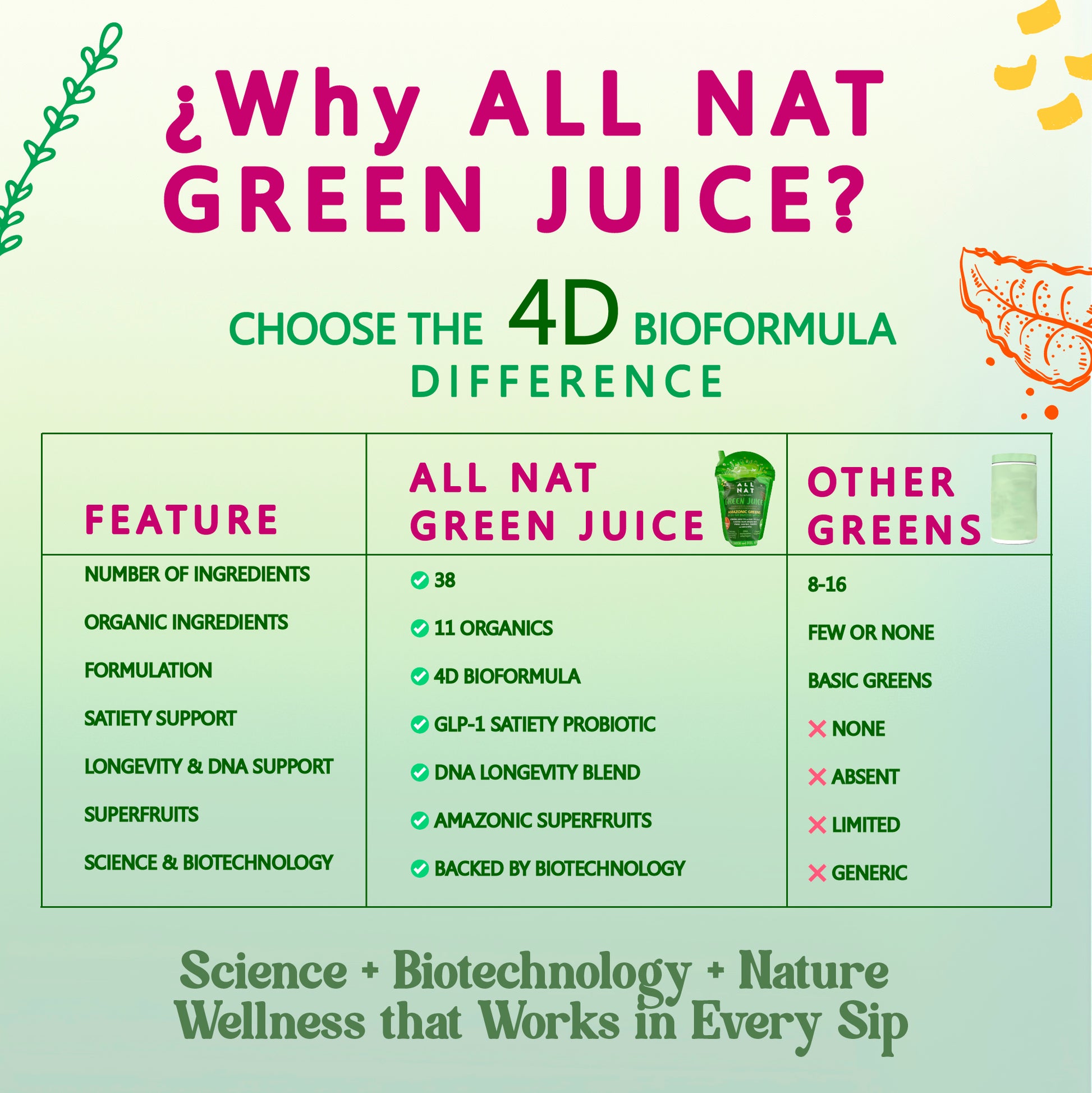 ✔️✔️ I don't like making green smoothies because I find them very tedious, but I love their benefits, so ALL NAT definitely came to make it easy for me to consume all the nutrients of a green juice, without the complexity of preparing it.