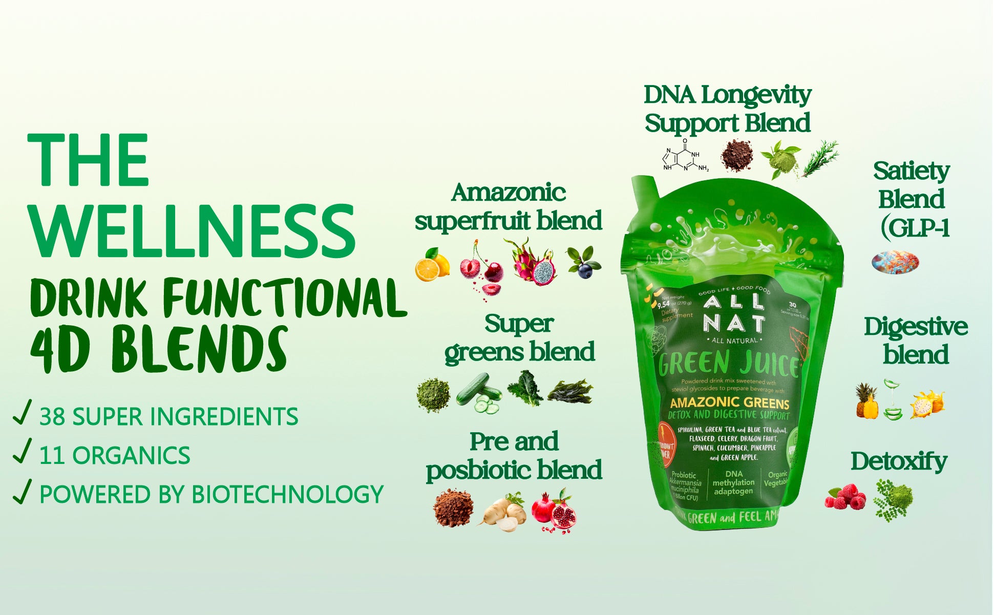 ALL NAT GREEN JUICE — The 4D Bioformula Wellness Drink that redefines green nutrition.